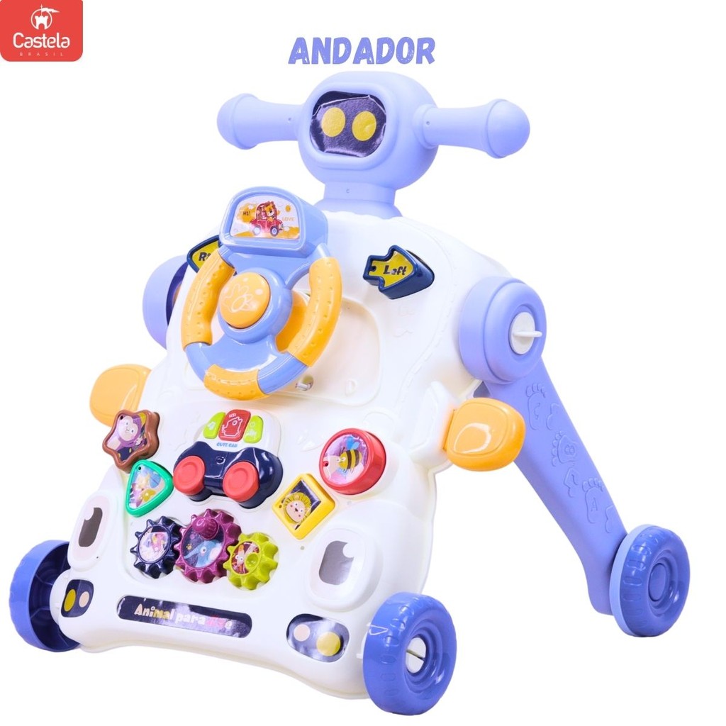 DESCRIÇÃO DO PRODUTO O Castela Andador Musical 3 em 1 com Luz e Som é a escolha perfeita para acompanhar o desenvolvimento do seu bebê de forma divertida, segura e educativa! Com um design encantador e multifuncional, ele oferece três modos de uso para diferentes fases do crescimento: Modo 1 – Caminhada: auxilia os primeiros passinhos com estabilidade, encorajando o equilíbrio e a coordenação motora. Modo 2 – Mesa de Aprendizagem: transforma-se em uma mesinha interativa com atividades lúdicas, luzes e sons que estimulam os sentidos. Modo 3 – Painel de Jogo: o painel destacável permite que a criança brinque sentada, explorando sons, formas e cores de maneira divertida. Com músicas alegres, luzes coloridas e um visual super atrativo, o Castela Andador é ideal para entreter e estimular o aprendizado do bebê. Perfeito para crianças em fase de desenvolvimento motor e sensorial! Diversão, aprendizado e movimento em um só brinquedo! CARACTERÍSTICAS TÉCNICAS: Conteúdo da Embalagem: 01 Andador Azul e um manual de montagem Dimensões Aproximadas do Produto: 43cm x 36cm x 38cm (Altura x Largura x Comprimento/Profundidade). Dimensões Aproximadas da Embalagem: 35cm x 39cm x 14cm (Altura x Largura x Comprimento/Profundidade). Material/Composição: Plástico Idade Mínima Recomendada: A partir de 6 Meses Participantes: A partir de 1 pessoa Alimentação: 2 Pilhas AAA (Não inclusas) Marca: Castela Brasil Referência: CBS0798B Outras informações: As cores podem variar entre as imagens mostradas acima e o produto. Imagens meramente ilustrativas. Aviso: As informações e imagens divulgadas são de total responsabilidade do fabricante/fornecedor. Produto lacrado e disponível a pronta entrega para todo Brasil! APROVADO PELO INMETRO