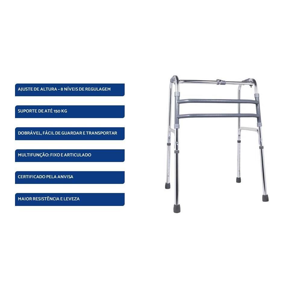 Andador Idoso Adulto Articulado Alumínio - 150kg - Med150