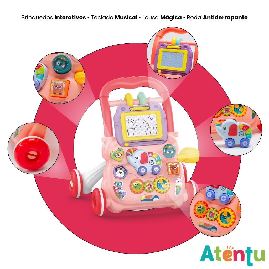 Estimule os primeiros passos do seu bebê com o Andador Infantil de Empurrar Educativo! Este brinquedo didático multifuncional vem com um teclado musical e uma lousa mágica, proporcionando aprendizado e diversão em um único produto. Ideal para o desenvolvimento motor e cognitivo, o andador ajuda a fortalecer as perninhas do bebê enquanto ele explora sons e cria desenhos. Feito com materiais seguros e duráveis, é perfeito para presentear e acompanhar o crescimento saudável do seu pequeno!