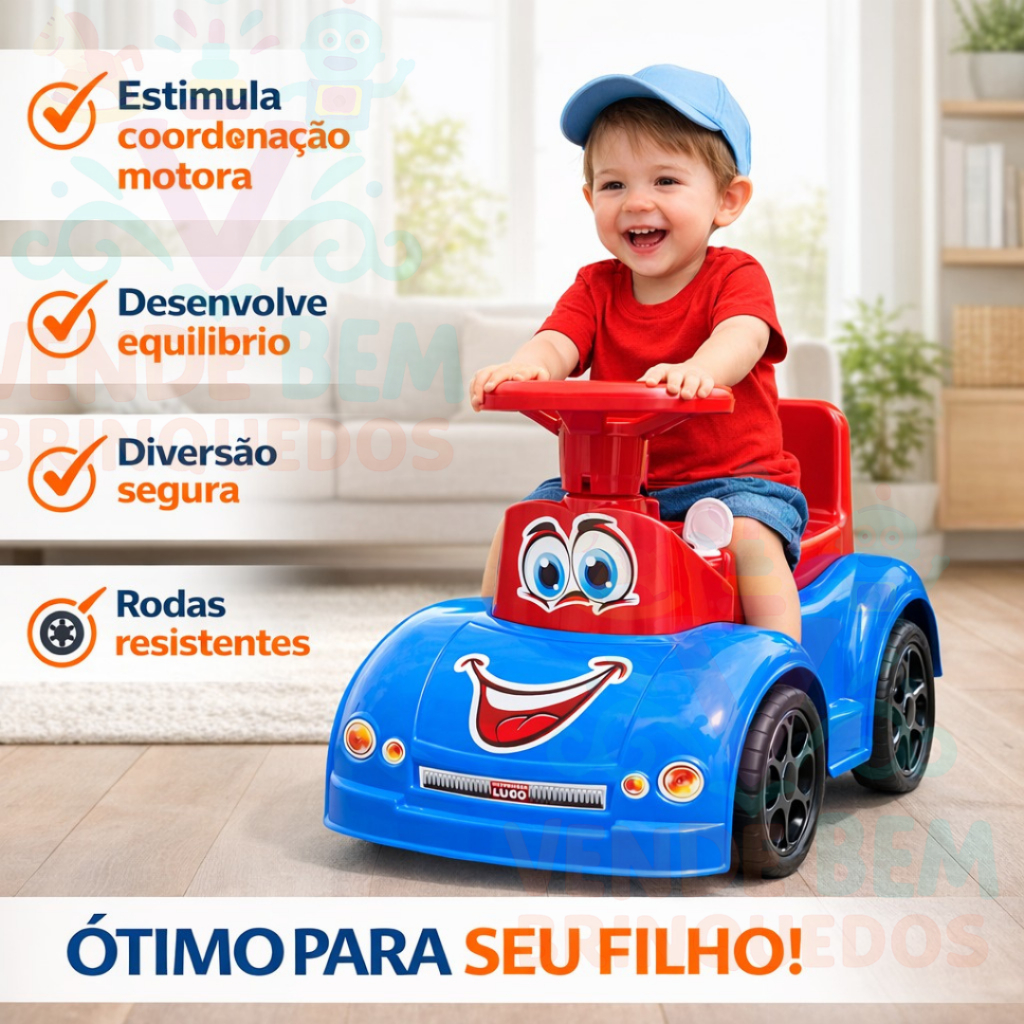O Andador Infantil LugToka Baby foi desenvolvido especialmente para auxiliar crianças na fase de aprendizado dos primeiros passos, proporcionando estabilidade, estímulo motor e diversão interativa. Fabricado no Brasil com materiais resistentes e duráveis, o modelo suporta até 40kg, oferecendo estrutura reforçada e segura para uso diário. - Funções Interativas: Porta-malas com sistema abre e fecha Marcha e chave com efeito sonoro “crec-crec” Buzina integrada 4 blocos geométricos de encaixe - Benefícios para o Desenvolvimento: Auxilia no equilíbrio corporal Estimula coordenação motora grossa Desenvolve coordenação olho-mão Trabalha reconhecimento de formas geométricas Incentiva autonomia e confiança ao caminhar - Segurança e Qualidade: Estrutura reforçada Material resistente e durável Bordas seguras Suporta até 40 kg Indicado para crianças a partir de 18 meses Produto fabricado no Brasil - Especificações Técnicas: Marca: Brinquedos Lugo Modelo: LugToka Baby Tipo: Andador Infantil Idade recomendada: +18 meses Peso máximo suportado: 40kg Conteúdo da embalagem: * 1 Andador Infantil * 4 Peças Geométricas APROVEITE E PROMOÇÃO E FAÇA JÁ O SEU PEDIDO. QUALQUER DÚVIDA DEIXE NOS COMENTÁRIOS