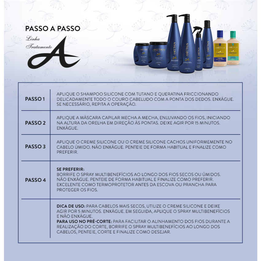 Aneethun - Creme de Silicone 250ml Linha A Cachos Benefícios: - Hidratação profunda para cabelos - Define e estimula cachos - Fortalece e recupera fios - Reduz frizz e volume Contém: - 1 Creme de Silicone Aneethun Linha A Cachos 250ml Clientes Dizem: - "Meus cachos estão mais definidos e hidratados!" - "Esse creme é perfeito para cabelos cacheados!" - "Adorei, meus cabelos estão mais suaves e gerenciáveis!"