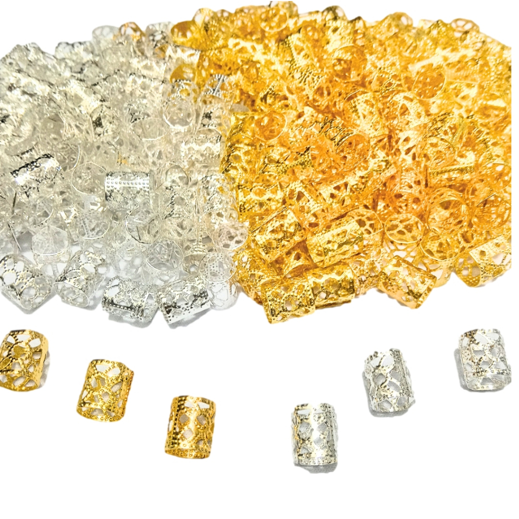 Anéis 100 unds para Trança Nagô Afro Box Braids Jumbo Twist Dreads Enfeites Acessórios Cabelo Enrolado Jóias Reguláveis Brilho Penteados Trancista Dourados Prateados Ajustáveis