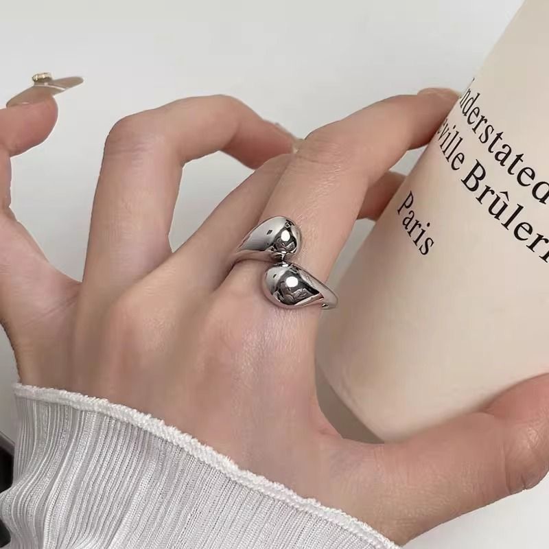 Anéis Abertos Ajustáveis de Aço Inoxidável Geométricos em Formato de Gota d''Água, Minimalistas