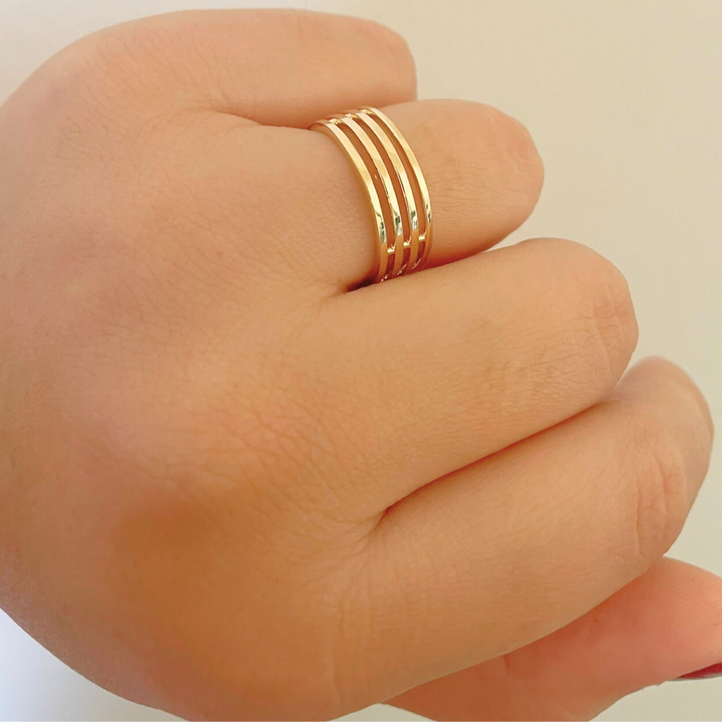 Anel 4 Filetes Delicado Banhado A Ouro 18k
