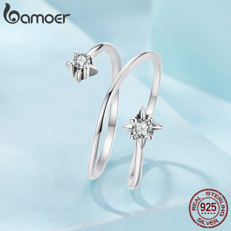 Anel Aberto De Prata Esterlina 925 Bamoer Tamanho Ajustável Estrela Joias Da Moda Presentes Para Mulheres
