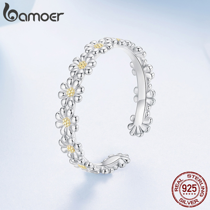 Anel Ajustável De Prata Esterlina 925 Bamoer Daisy Fashion Jewelry Presente Para Mulheres