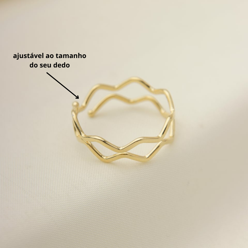 Anel Ajustável Feminino Aro Duplo, Semijoia Banhado a Ouro 18k, Elegante Uso Diário