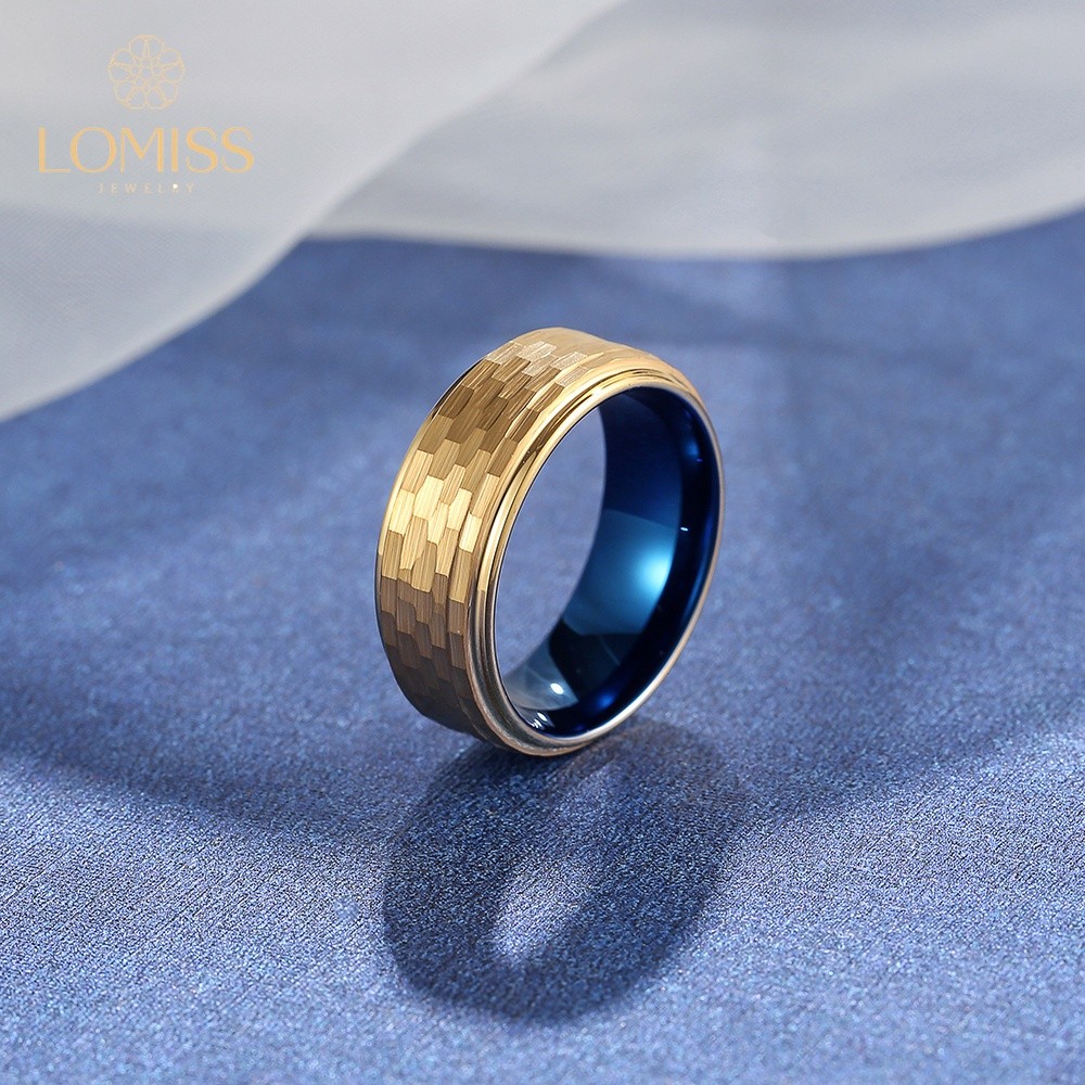 Anel Alianca De Casamento Masculino De Ouro Aço Tungstênio Pvd/Azul