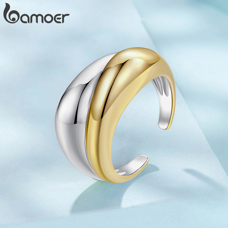 Anel Bamoer De Dois Tons Simples Ajustável Design Joias Presente Feminino