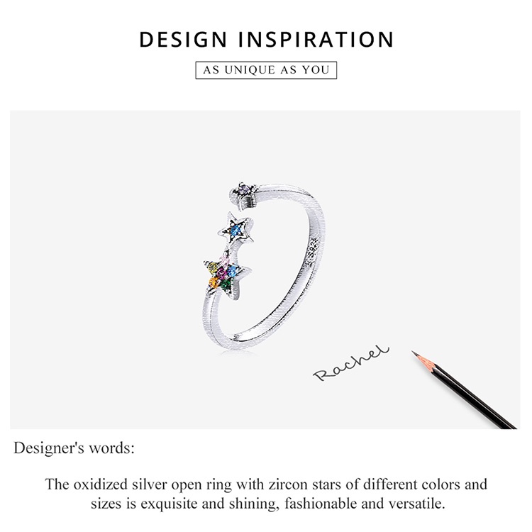 Anel Bamoer De Prata Esterlina 925 Com Formato De Estrela Brilhante SCR769