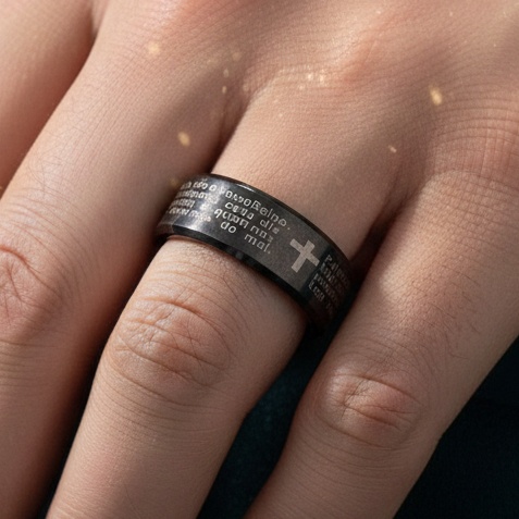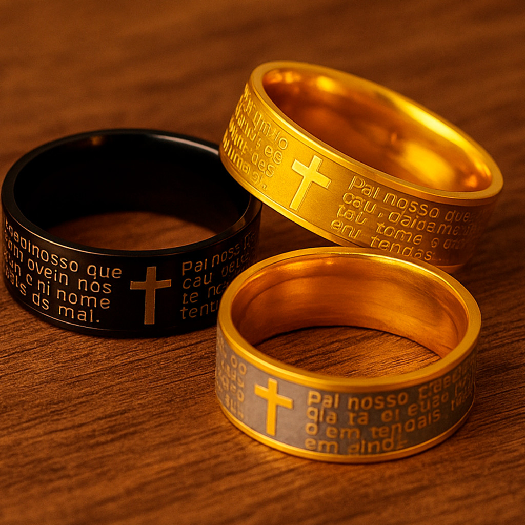 | Anel com Oração do Pai Nosso 6 mm em Aço Inox PVD Preto este produto | R$ 11,99 | 40% | 5.0/5 | 9 |