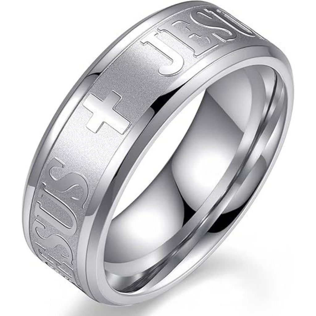 Anel de Aço Inoxidável Cruz Jesus Gravado
