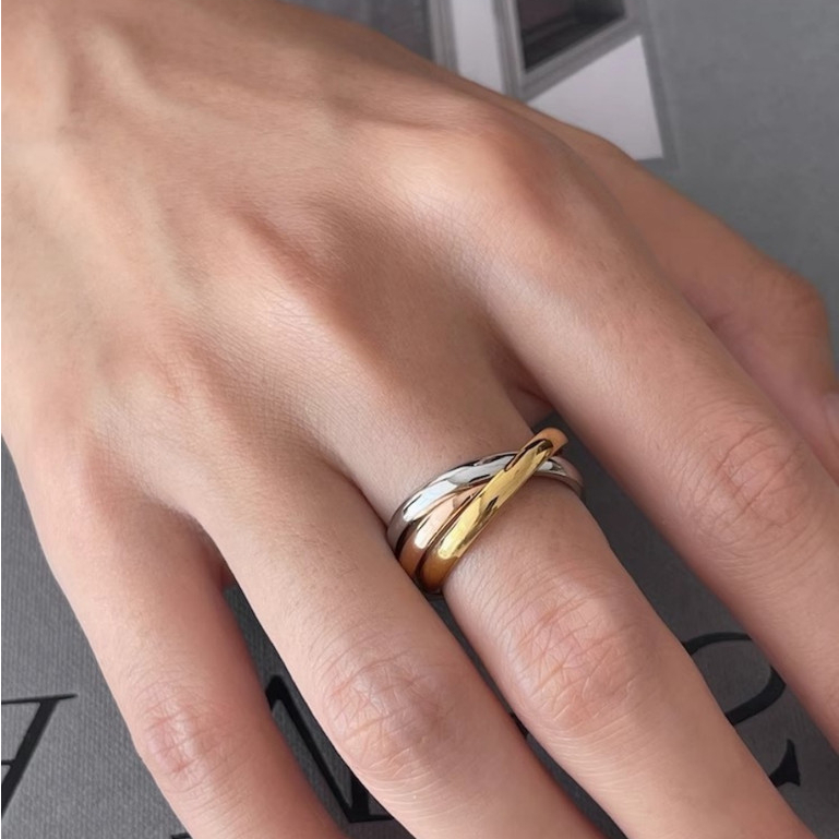 Anel De Aço Titânio De Três Cores Clássico Minimalista Com Três Anéis Para Mulheres Sem Caixinha