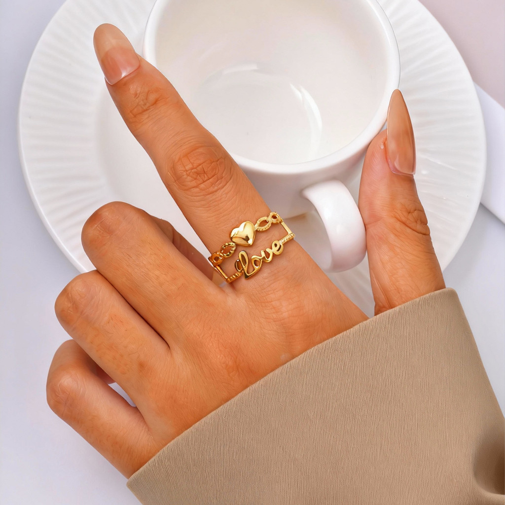 Anel De Amor De Coração Vnox Para Mulheres E Meninas , Anéis Abertos De Aço Inoxidável Em Ouro 18K , Presente De Joia