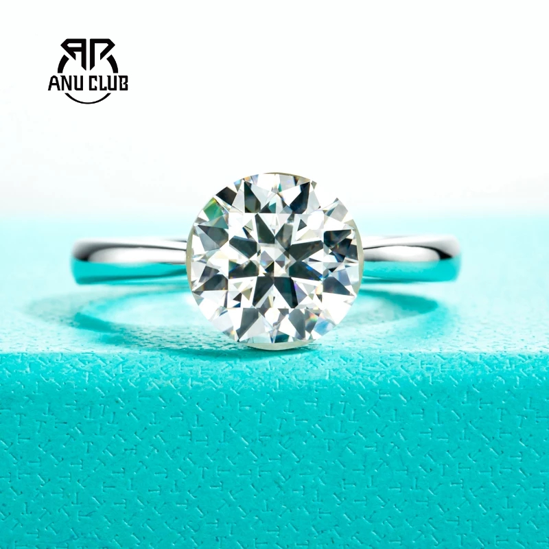 Anel De Casamento Moissanite De Corte Redondo AnuClub 2ct D/VVS1 Prata 925-Kit De Compromisso De Aniversário