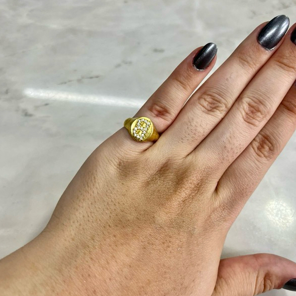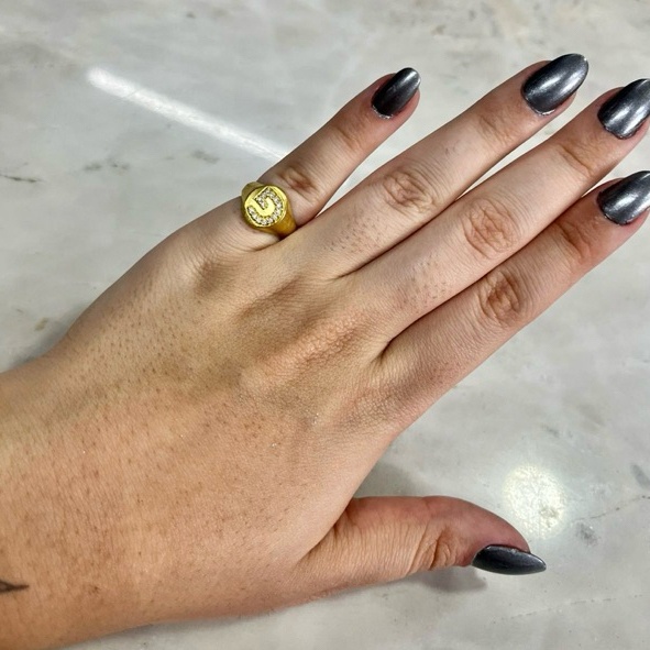ANEL DE DEDINHO AJUSTÁVEL LETRA CRAVEJADO - 100% MOEDA ANTIGA