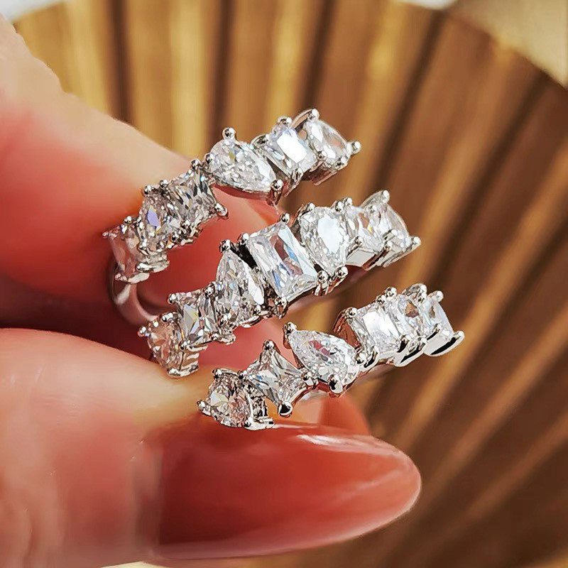Anel de dedo indicador de três camadas de diamante de zircônio feminino abertura ins anel casal