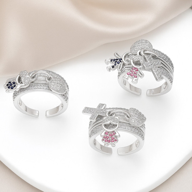 Anel de filhos cravejado em zircônias Luxo ajustável Feminino De Ouro 18K prata 925 Jóias