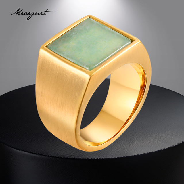 Anel De Jade De Ouro 18K Meaeguet Para Homens , Anéis De Pedra Preciosa Natural Quadrada De Aço Inoxidável Presente Masculino