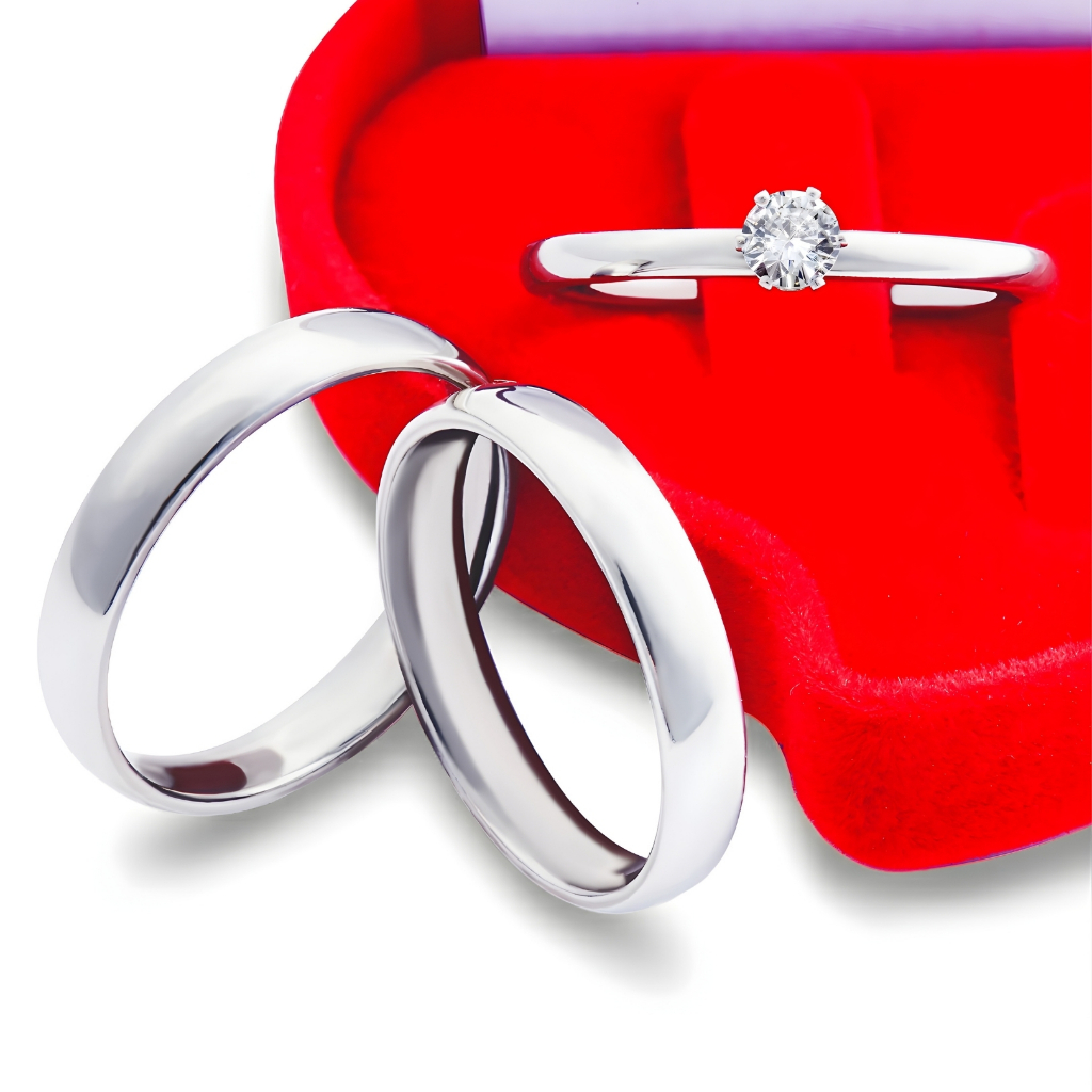 Anel de Namoro Par Aliança Compromisso Solitário Caixa de Veludo Noivado Tradicional Aço Inox Prata