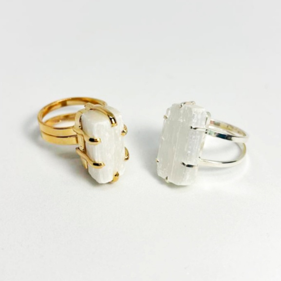 Anel de Pedra Natural Selenita ✨ A pedra é 100% natural, o que significa que podem ocorrer variações de cor, formato e tamanho, e é isso que torna cada anel único no mundo. O aro é ajustável, então você não precisa se preocupar com o tamanho. É só colocar e sentir a energia da sua pedra. 💍 Uma joia feita pela natureza, escolhida com carinho pra você.🩵 Material: Bijuteria