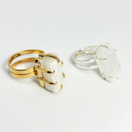 Anel de Pedra Natural Selenita