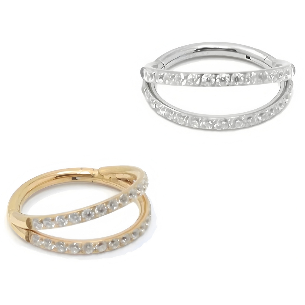 Anel de Piercing em Aço Inoxidável com Dobradiça de Zircônia Dupla Fileira Ideal para Helix Septo Nasal, Cóclea e Nariz