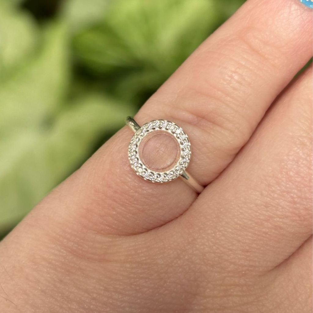 Anel de Prata 925 Círculo Vazado e Cravejado
