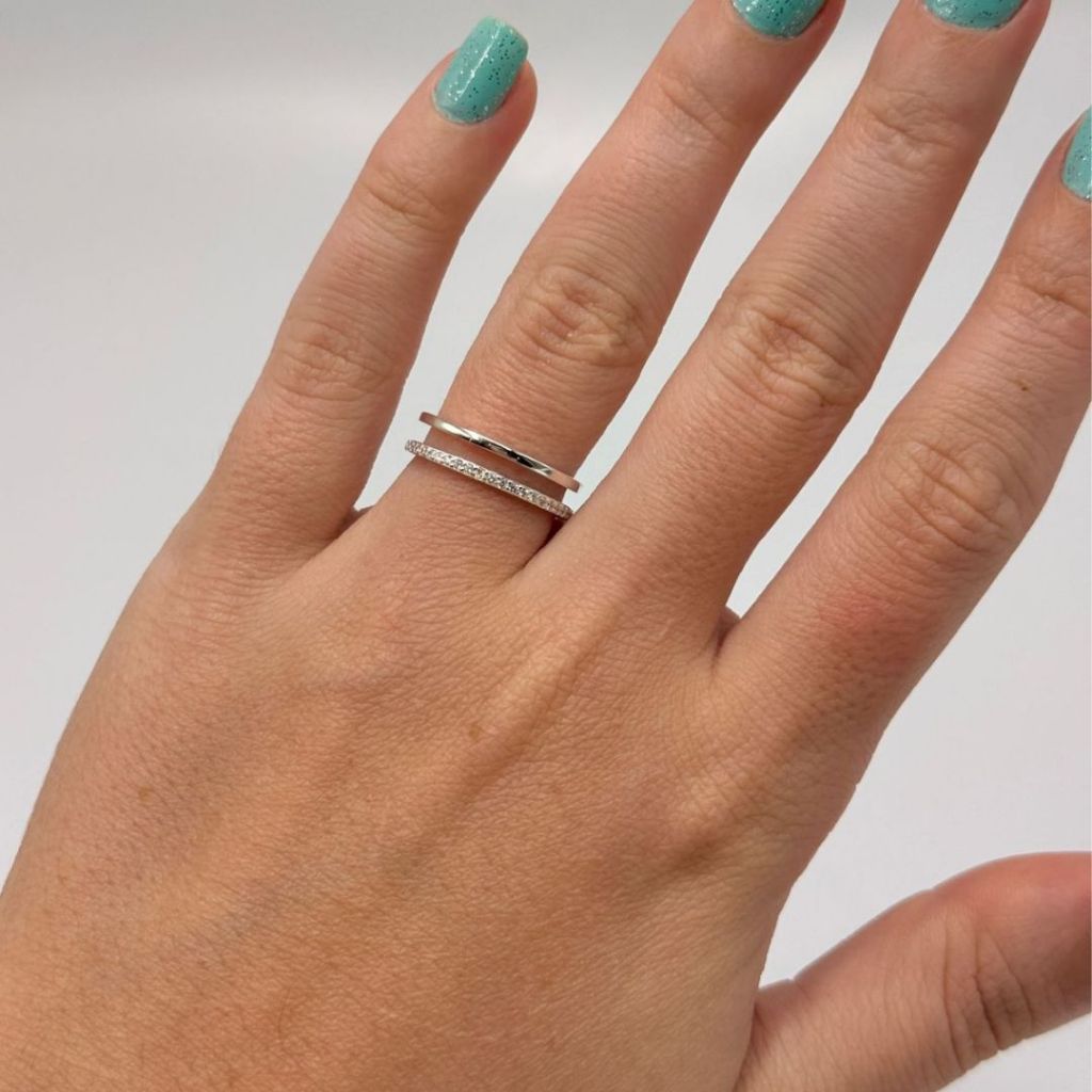 Anel de Prata 925 Duplo Vazado e com Zircônias