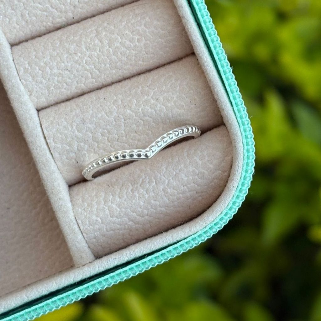 Anel de Prata 925 Formato V e Detalhado