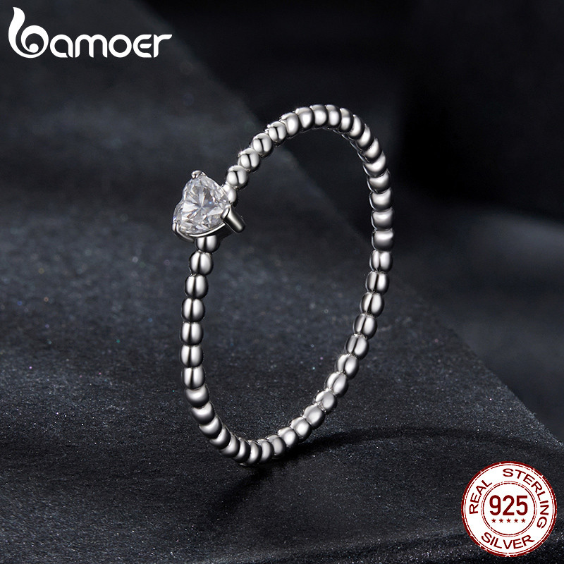 Anel De Prata Esterlina 925 Bamoer Coração Moissanite Presentes Elegantes Para Mulheres MSR063