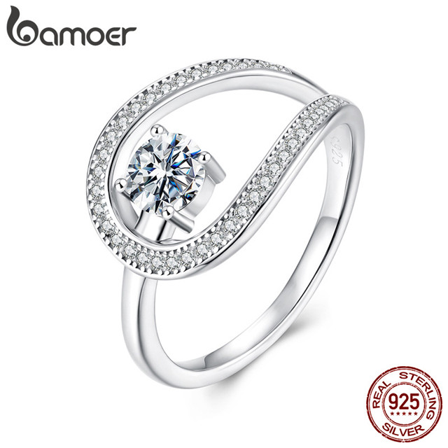 Anel De Prata Esterlina 925 Bamoer Luxo Moissanite Design Joias Presente Feminino