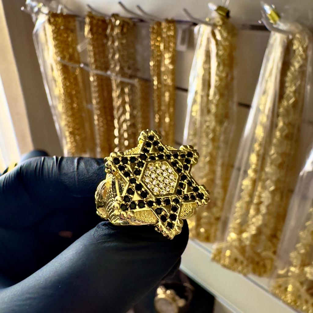 ANEL DEDEIRA AJUSTÁVEL ESTRELA DE DAVI CRAVEJADO - 1OO% MOEDA ANTIGA
