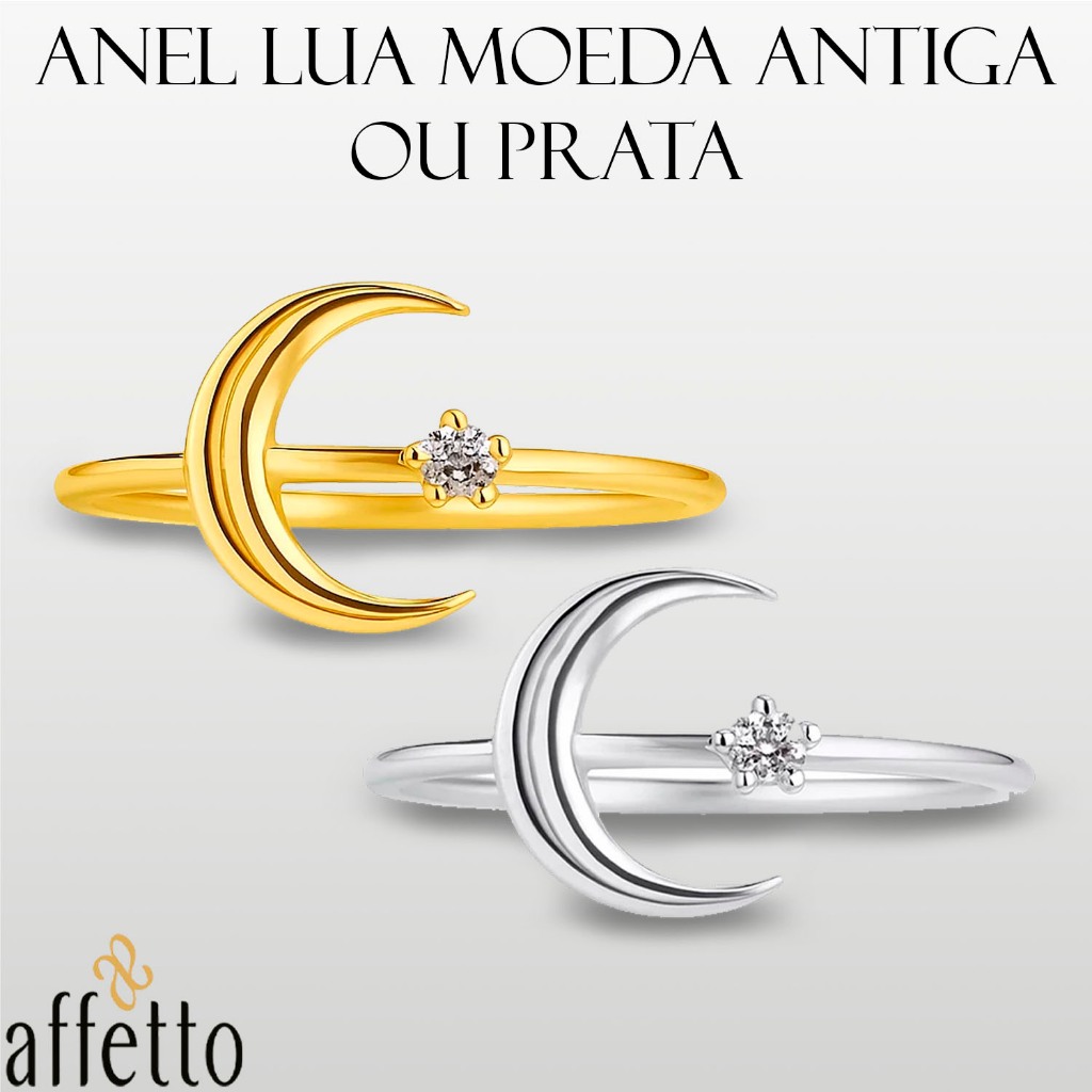 Anel Delicado Lua Em Moeda Antiga Ou Prata Minimalista