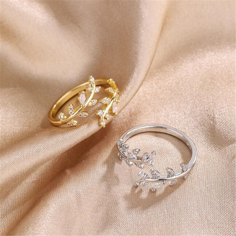 Anel Feminino Aberto Estilo Fashionable Unique 925 Sterling Silver Ring Pequeno Anel de Folha de Diamante Fresco Aberto Anel Feminino Estilo Fashionable Cool Style Simples Ajustável Jóias de Mão CR126