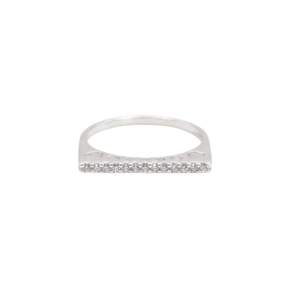 Anel Feminino Corações Vazados Cravejados Prata 925 Minimalista e Moderna