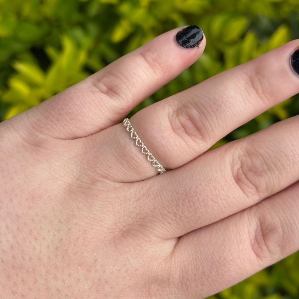 Anel Feminino de Prata 925 Corações com Bolinhas