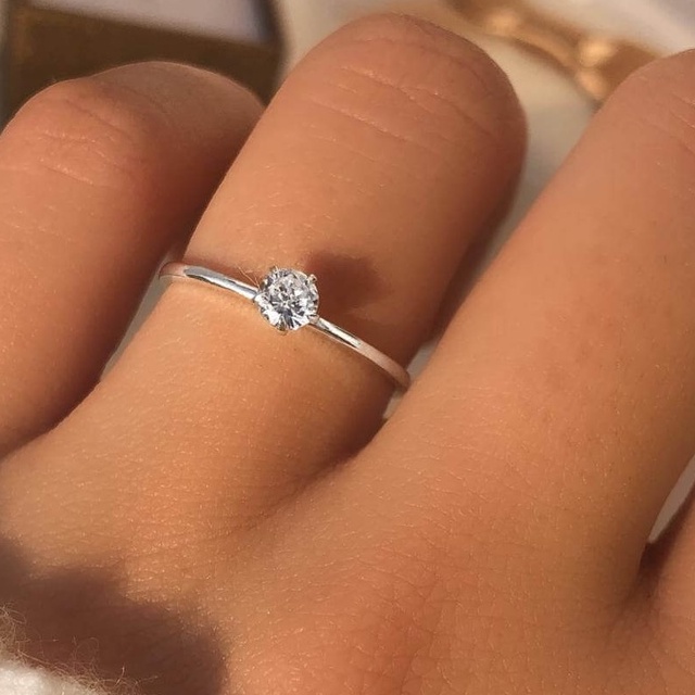 Anel Feminino Solitário Aço inox Prata com pedra 2mm