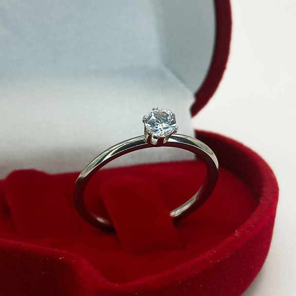 Anel Feminino Solitário Prata 2mm Diamante Zircônia Aço Namoro Noivado Compromisso Formatura