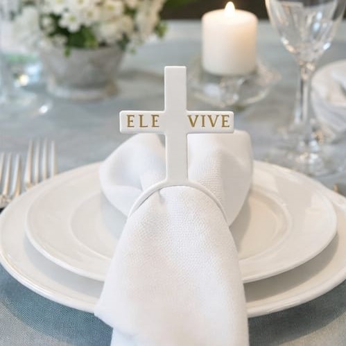 Anel Guardanapo Religioso Cruz Ele Vive Mesa Posta Cristã Igrejas Eventos Kit 4 / 6 / 8 / 12/ 24 Unidades
