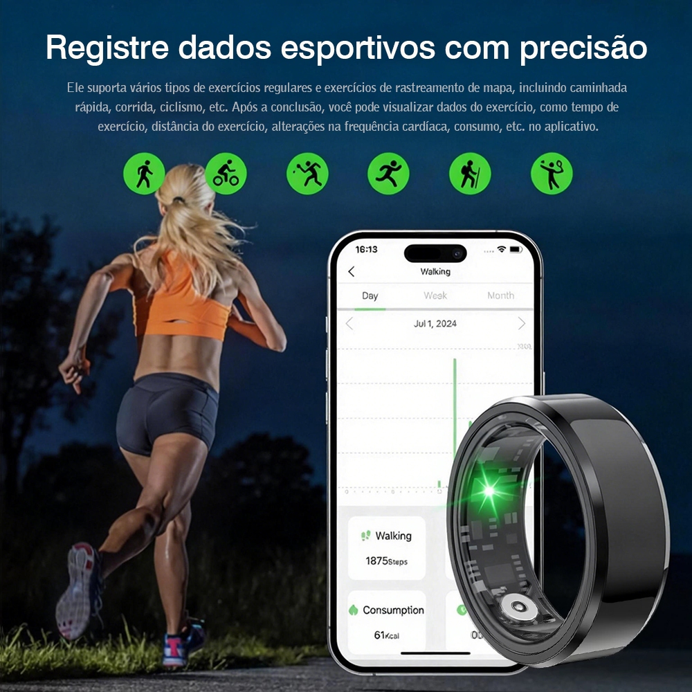 💖Verifique o Tamanho Antes da Compra💖: Antes de comprar o Smart Ring, recomendamos enfaticamente que você consulte a tabela de tamanhos e meça cuidadosamente a circunferência do seu dedo. Isso garantirá que você tenha a experiência de uso mais confortável e evite facilmente devoluções ou trocas desnecessárias. Sobre este item: ⭐[Monitoramento preciso em tempo real do sono e da atividade física]: O anel inteligente monitora a qualidade do seu sono e suas atividades diárias em tempo real. Com sensores avançados, ele fornece dados precisos sobre o seu ciclo de sono, ajudando você a otimizar o descanso e a recuperação. Seja para monitorar passos, calorias ou desempenho nos exercícios, este anel inteligente oferece as informações mais precisas para apoiar suas metas de condicionamento físico e melhorar sua saúde geral. ⭐[À prova d'água IP68 e durável]: Projetado para estilos de vida ativos, este anel de saúde à prova d'água IP68 resiste à lavagem das mãos, ao suor e à chuva. Durável e leve, ele foi feito para ser usado o dia todo em casa, no trabalho ou durante os treinos. ⭐[Sem taxas de assinatura]: O aplicativo complementar funciona com iOS e Android, permitindo que você visualize dados de frequência cardíaca, oxigênio no sangue e sono a qualquer momento, sem custos extras. ⭐[Bateria de longa duração]: Com uma autonomia de 7 a 10 dias, o anel inteligente garante o monitoramento contínuo da saúde sem a necessidade de recargas frequentes.