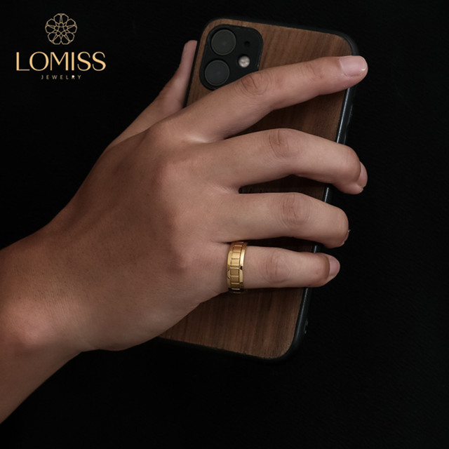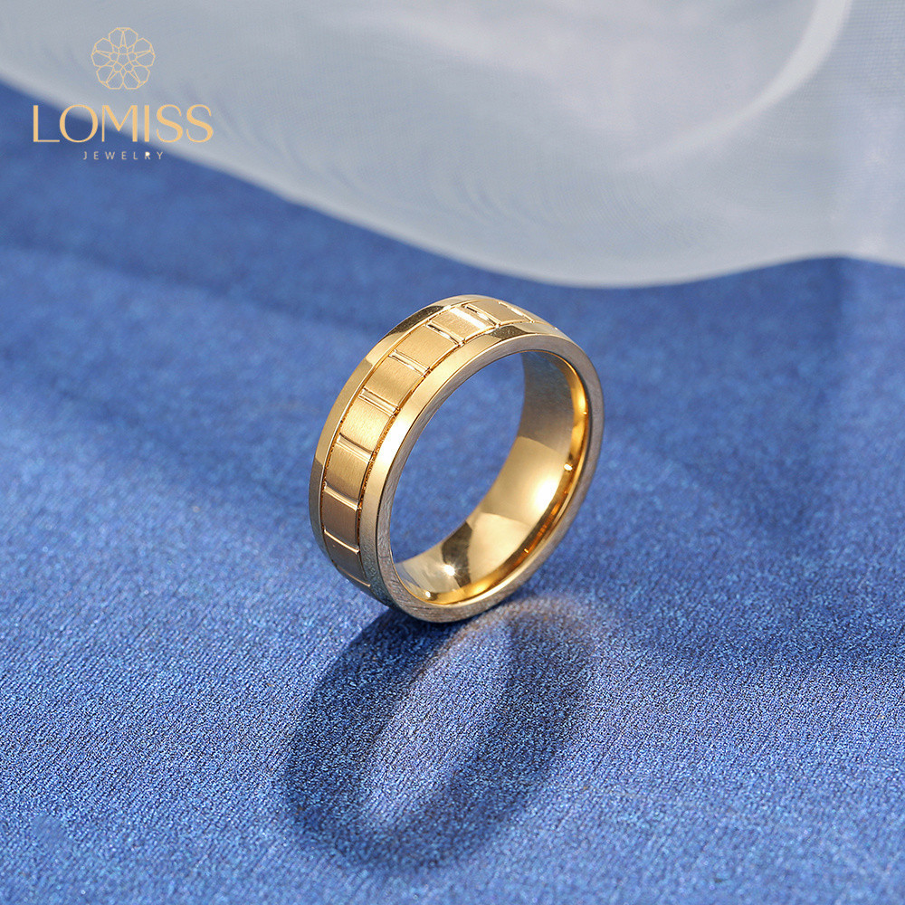 Anel Masculino De Ouro Aço Inoxidável 316 Detalhes/Fosco