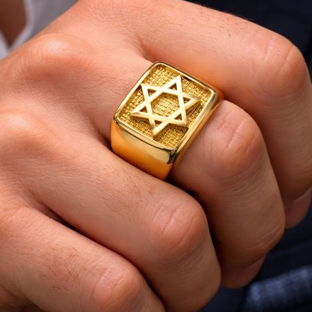 Anel Masculino Estrela de Davi Dourado Aço 316L luxo Premium