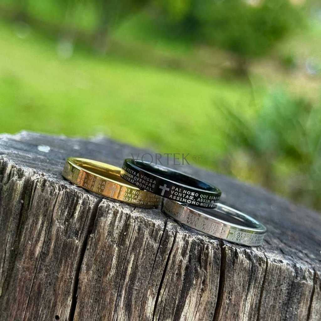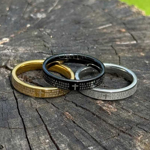 Anel Oração Pai Nosso Aço Inox Unissex Minimalista 4mm nao escurece Aço inox Presente