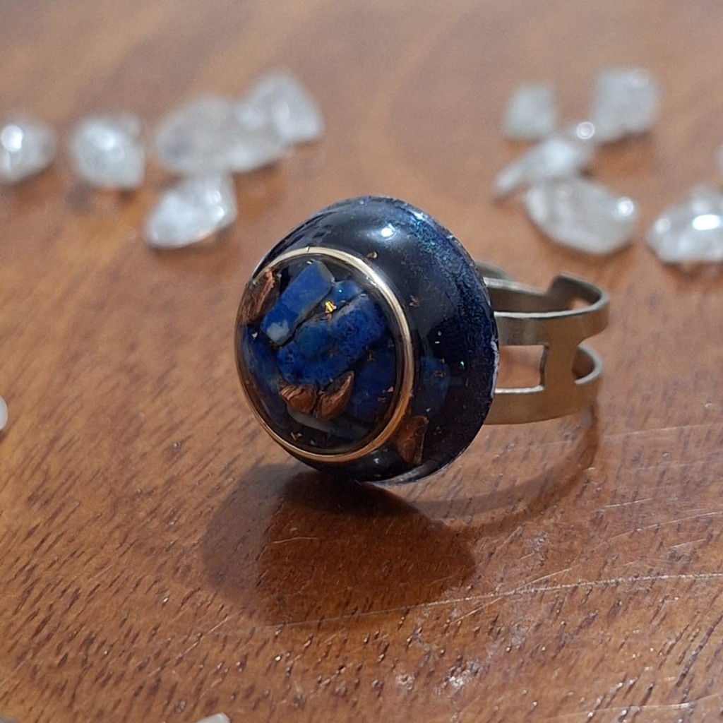 Anel Orgonite Lápis Lazulli Tratamento Depressão Ajustável