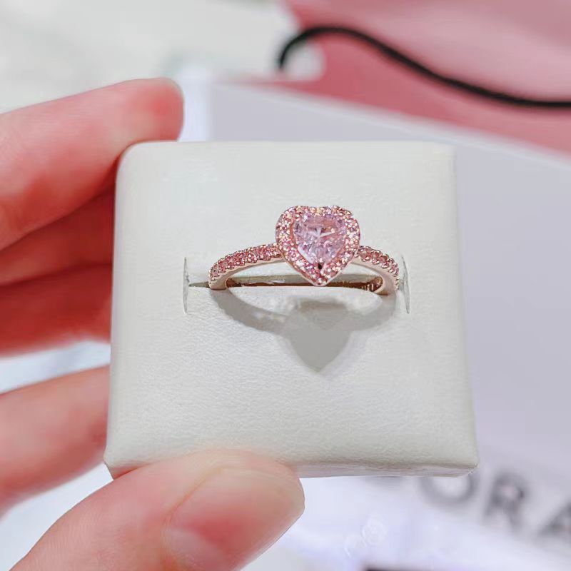 Anel Ouro Rosa Coração, s925 Anel Feminino de Noivado Romântico e Tendência Presente Resistente a oxidação Hipoalergênic