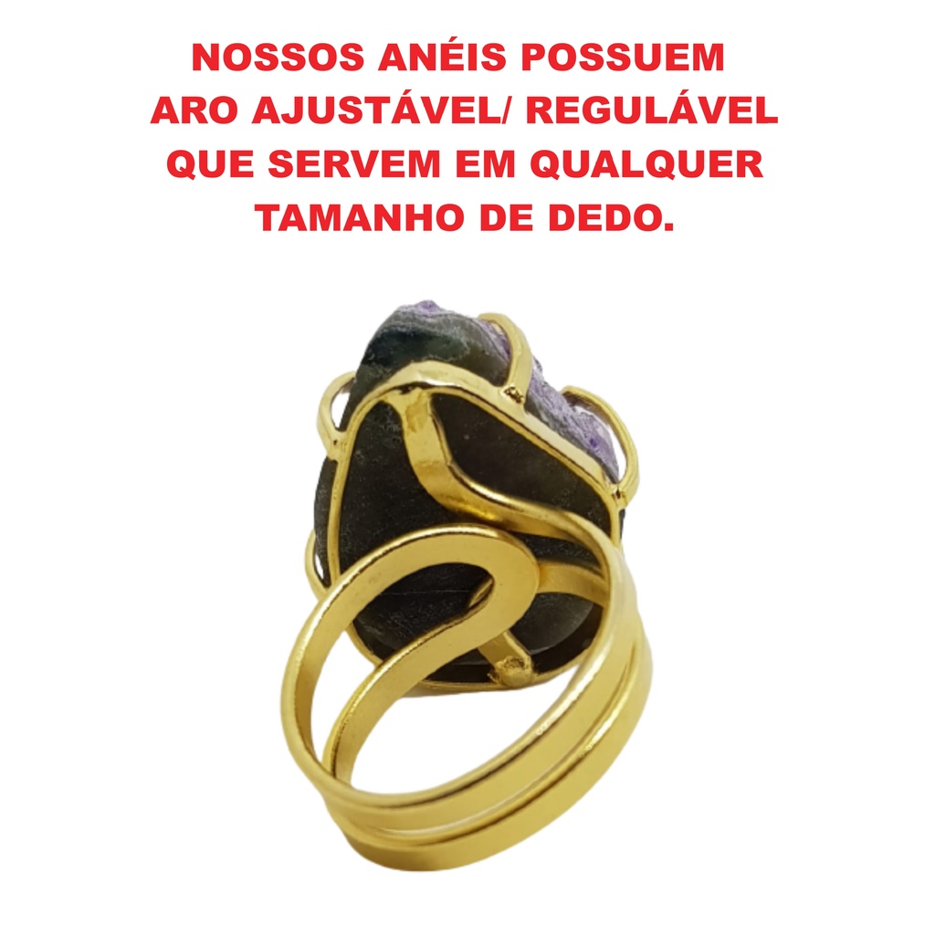 ANEL DE PEDRA NATURAL SEMI-PRECIOSA DRUSA DE AMETISTA BANHADO A OURO 18K. >>>>>Favor ler o anúncio antes de finalizar a sua compra<<<< FOTO MERAMENTE ILUSTRATIVA. CADA PEDRA, POR SER NATURAL, É ÚNICA! Feito em metal folheado/banhado a ouro de excelente qualidade, não escurece com facilidade. POSSUI ARO AJUSTÁVEL QUE SE ADAPTA EM QUALQUER DEDO, OU SEJA, SERVE EM QUALQUER NUMERAÇÃO. A drusa de Ametista desperta a intuição, bloqueia ataques espirituais, purifica a energia de ambientes, aumenta nossa energia vital e ajuda a emagrecer. A drusa é muito usada para purificar e proteger espaços contra energias ruins. Acompanha embalagem de veludo. Excelente para presentear! OBSERVAÇÃO: Não nos responsabilizamos por atrasos dos correios, uma vez que, após a postagem, a responsabilidade pela entrega é exclusivamente dos correios. Trocas só serão realizadas em caso de defeito de fabricação, após análise do departamento técnico. Artigos 18 e 26 do Código de Defesa do Consumidor (CDC). Estamos à disposição em caso de dúvidas. BOAS COMPRAS!!!