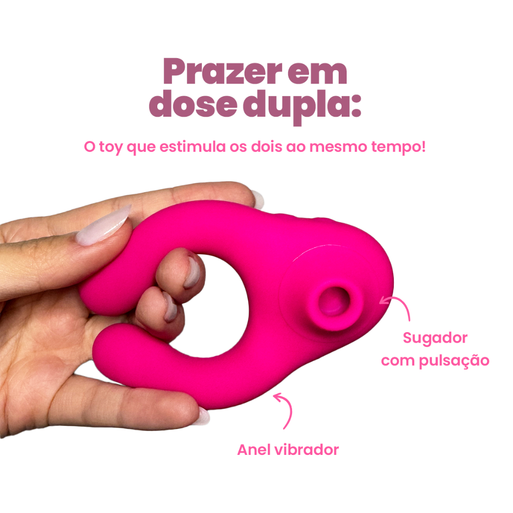 🍆💦 Anel Peniano Vibrador com Sugador de Clitóris – Duplo Prazer e Estimulação! 💜 Transforme seus momentos íntimos em uma experiência intensa e inesquecível com o Anel Peniano Vibrador com Sugador de Clitóris Recarregável. Projetado para estimular ambos os parceiros, ele combina 7 modos de vibração com 7 modos de pulsação, proporcionando prazer simultâneo e máximo controle. O anel peniano ajuda a manter a ereção por mais tempo, enquanto o sugador estimula o clitóris com pulsos suaves e precisos. Feito em silicone macio e hipoalergênico, é confortável, seguro e se adapta perfeitamente ao corpo. ✨ Destaques do produto: 💥 Dupla função: vibração + sucção para prazer conjunto; ⚙️ 7 modos de vibração e 7 modos de pulsação – total de 14 combinações intensas; 🔋 Recarregável via USB – prático e econômico; 💧 Resistente à água – fácil de limpar e ideal para brincadeiras molhadas; 🤫 Motor silencioso, perfeito para uso discreto; 💜 Material: Silicone macio e seguro para o corpo; 📏 Design anatômico, confortável e ajustável. 📦 Envio 100% seguro e discreto. 🔥 Ideal para casais que desejam elevar o prazer e explorar novas sensações com total conforto e tecnologia! 🩷 Como Recarregar? Não use um adaptador com mais de 5 V no seu vibrador e nunca guarde o toy descarregado pois pode comprometer a bateria. Conecte o carregador no ponto indicado e plugue o USB em um adaptador com até 5V. Carregando: luz piscando Carregado: luz contínua Após conectar na energia, aguarde até 10 minutos para que inicie o carregamento do Vibrador e Pulsador/Sugador. O vibrador recarregável não deve ser utilizado enquanto estiver na tomada.