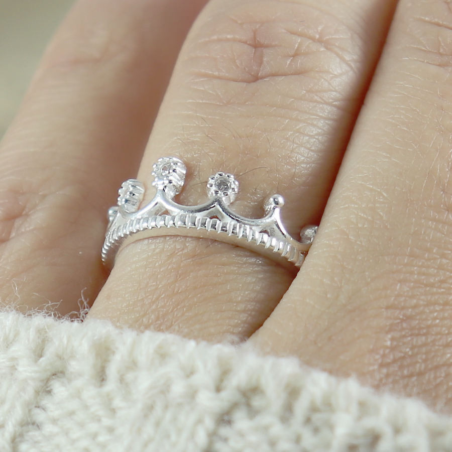 Anel Prata Original Feminino Coroa Princesa Rainha Cravejado