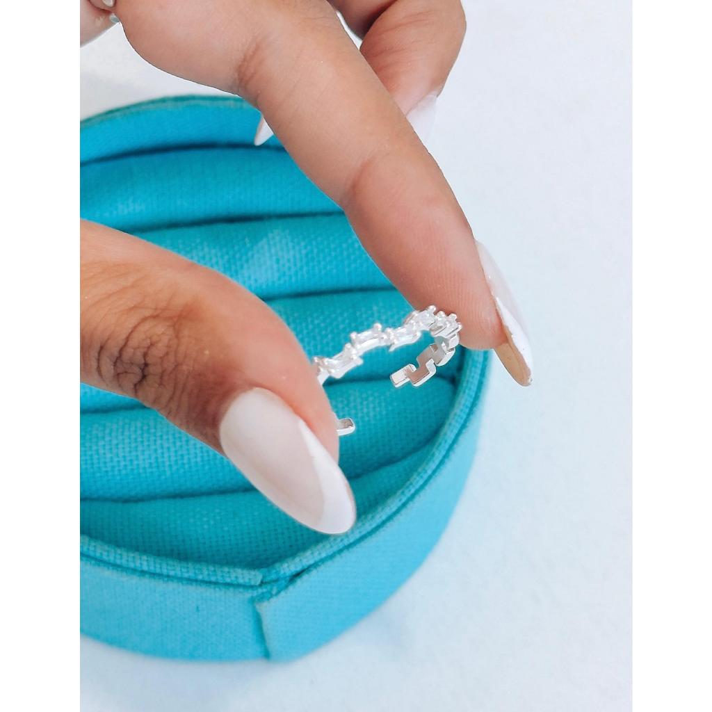 Anel regulável pedraria banhado à prata 925